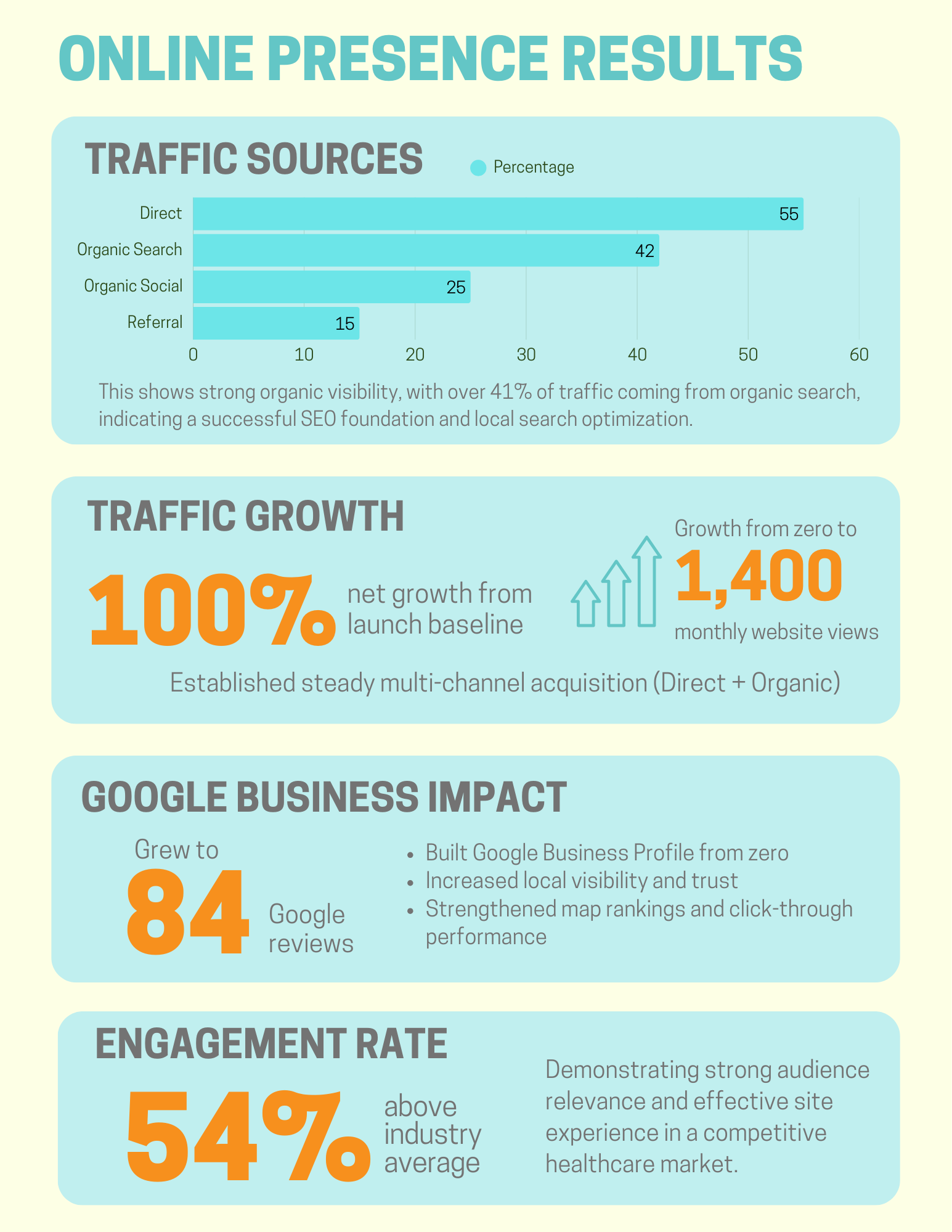 • Grew profile to 84 Google reviews