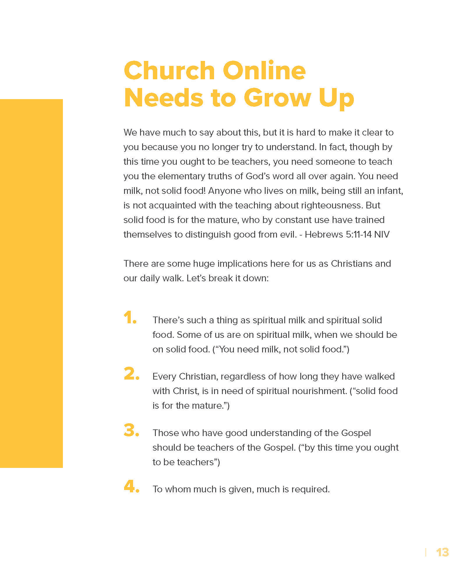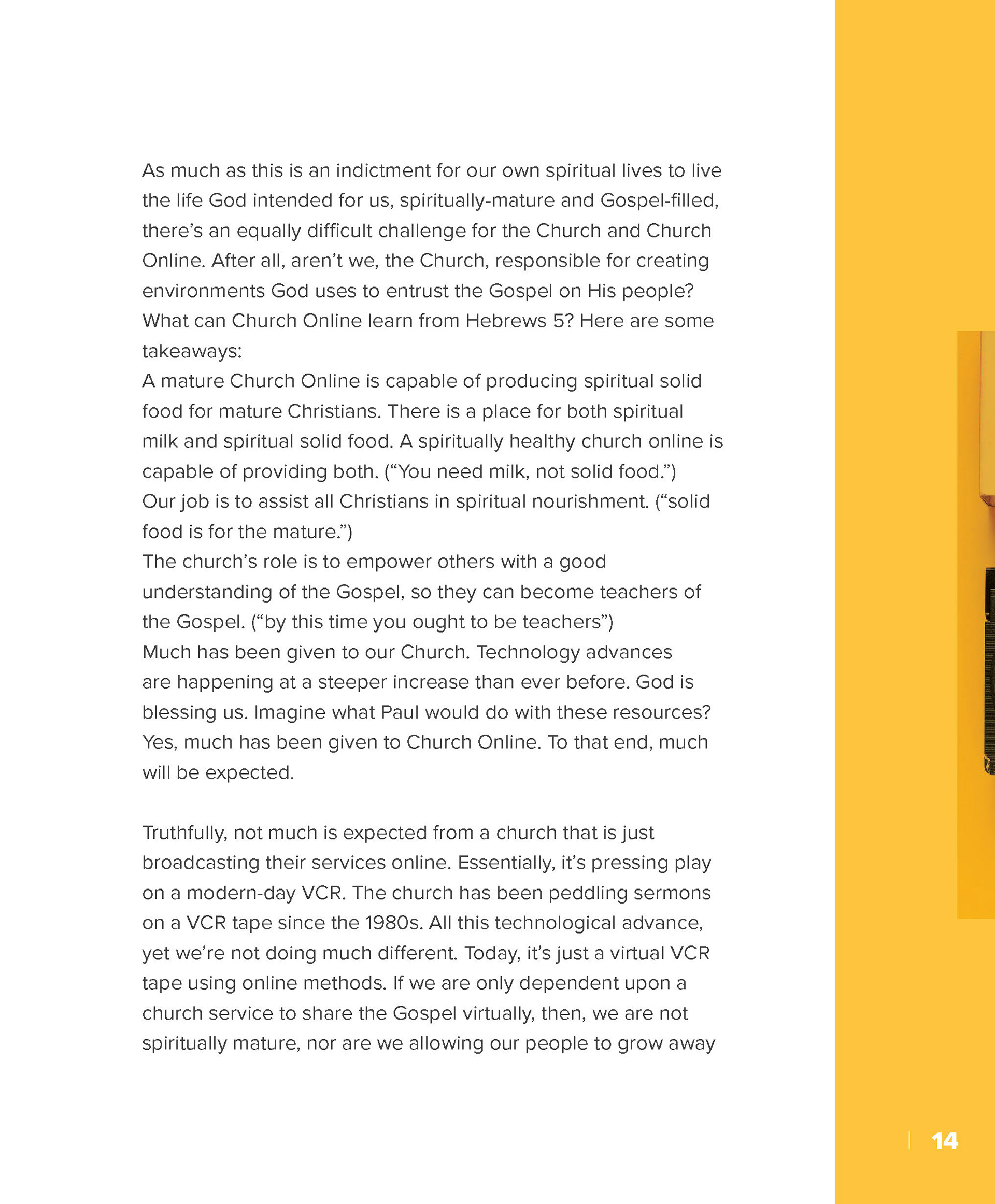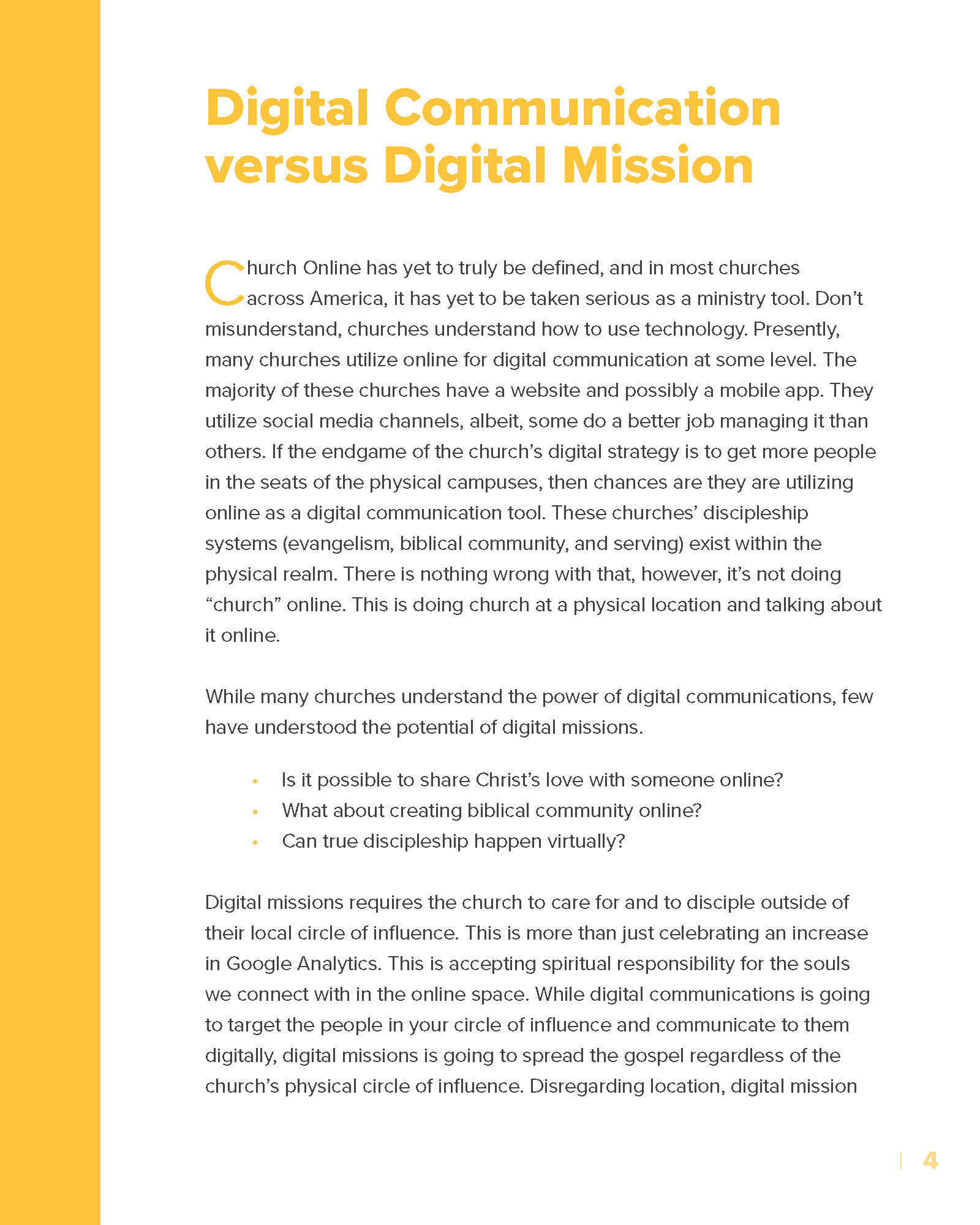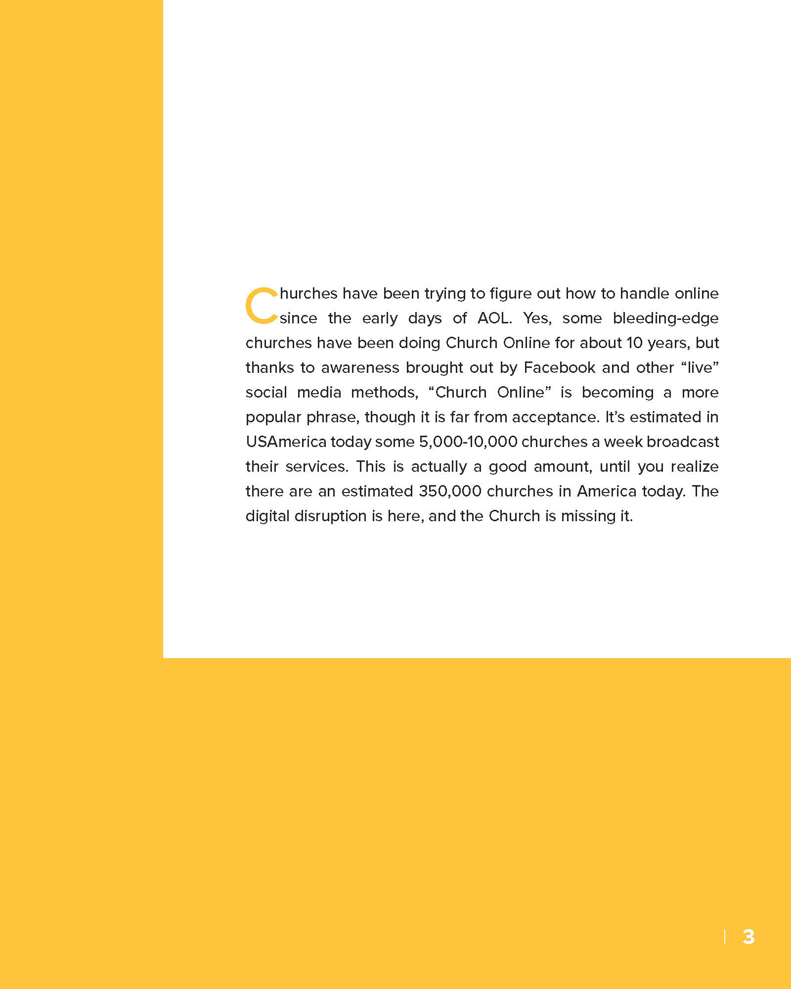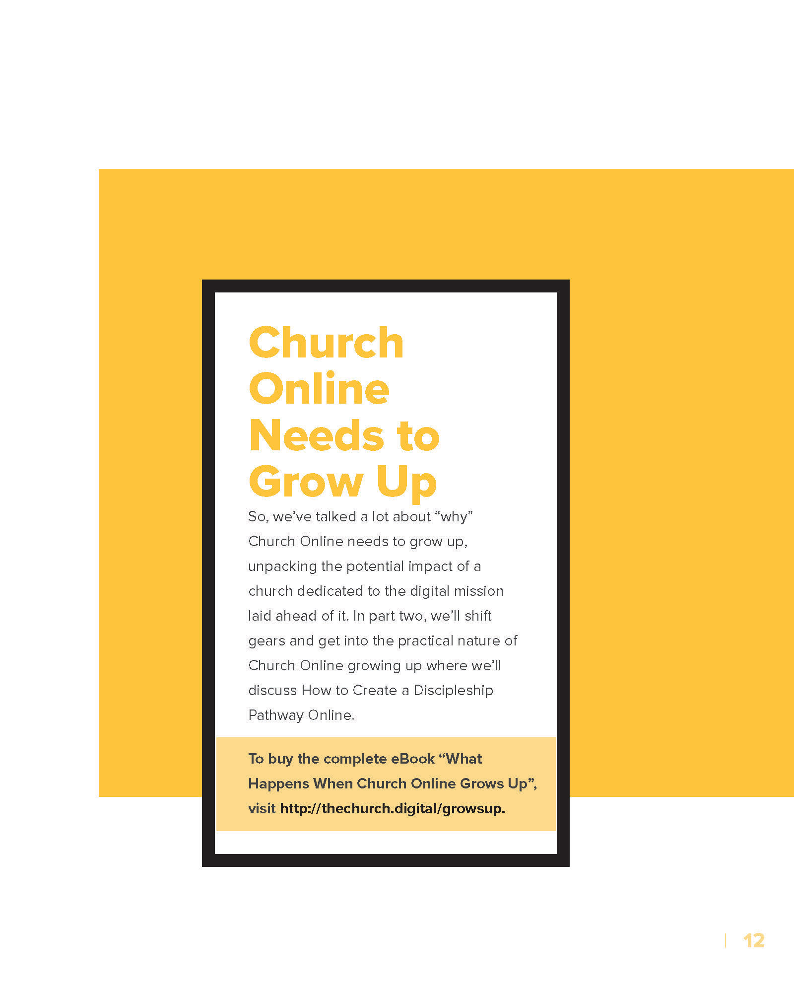 I designed a clean, on-brand e-booklet for The Church Digital, guided by a thoughtful analysis of their visual identity. I strategically incorporated yellow as the primary accent color—integrating it into icons, graphic elements, and photography—to create a cohesive, modern, and visually engaging final product.